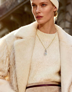 Shaped by the pure radiance of pearls and the warm touch of gold, the Snowman Necklace blends the joyful spirit of the season with timeless elegance. Finely crafted details catch the light from every angle, offering modern sweetness and refined sophistication.